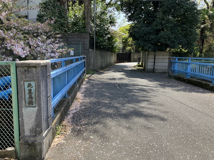 白子川に架かる北豊島橋から旧将校住宅を望むと、道が曲がっていて見通しが妨げられています。このようにして住宅地の環境を外部から守っているのです。