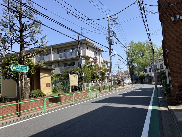 - したみち通りを歩いていると、いくつかの交差点に「○○橋」という名前がついていることに気が付きます。これは、したみち通りの南側を大泉堀という白子川の支流が通っていた頃の名残です。現在は、暗渠(ふたをかけた状態)になっていて歩行者用道路になっています。