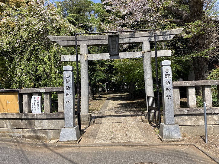 都道24号線の先に、ポイント4の「奥へ奥へといざなう諏訪神社の参道」があります。緑の木々に覆われた参道は、参詣者を奥へ奥への誘います。