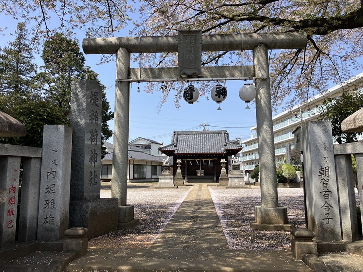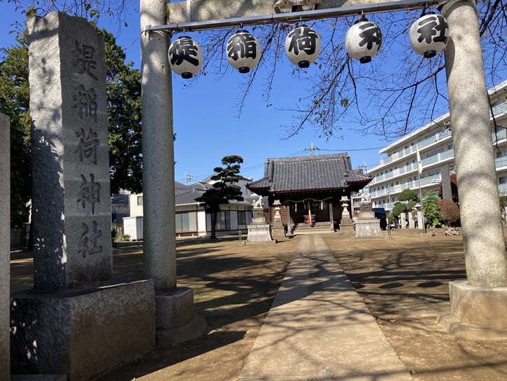 鳥居の提灯が2個欠けていますが、2021年には「堤 稲 荷 神 社」となっていました。信仰心が足りませんね。