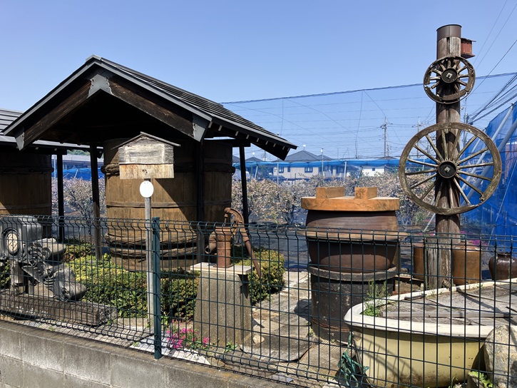 練馬には、かって農業が盛んだった頃の原風景がポイント8の「農風景を感じるまちのしつらえ」としてあちこちに保存されています。永井ブルーベリー園の角地に、大きな樽が並んでいます。昔使われていた漬物樽なんだそうです。大釜は何に使われていたのでしょうか?