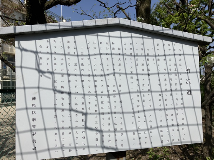 ちなみに、大泉第二小学校の前を通る道路はかっての所澤道の道筋でした。