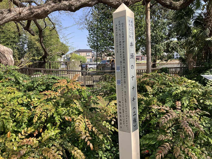 園内には2本の大きな柳の木が聳えています。「井頭のヤナギ」として練馬区の天然記念物に指定されています。