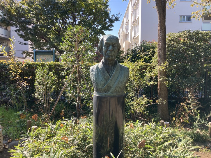 庭園の一画に牧野博士の銅像が建っています。