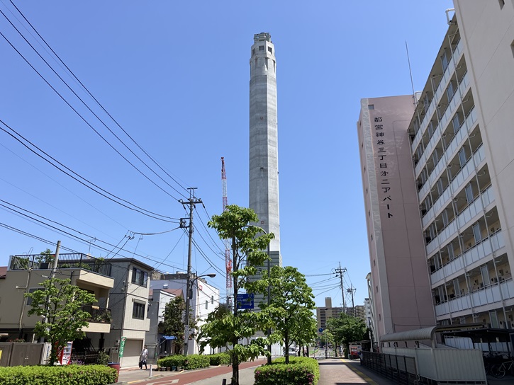 北清掃工場は令和五年春から解体工事が始まり、令和十二年2月に全ての施設が完成して再稼働する予定になっています。新しい工場棟は地下3階・地上5階建て・延べ面積は3万4000uで、1日当たりの処理能力は建て替え前と同じ600t(300tX2炉)となっています。鉄筋コンクリート造の煙突は高さ約120mになるとのことですが、完成予想図を見ますと、特徴的な八角形の煙突の形状は踏襲されるものの、塔屋の部分が見当たりません。あれが好きだったのですがね。