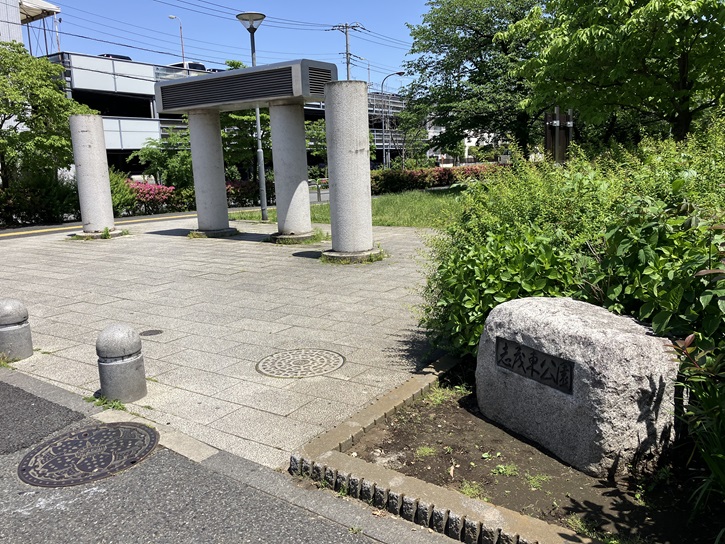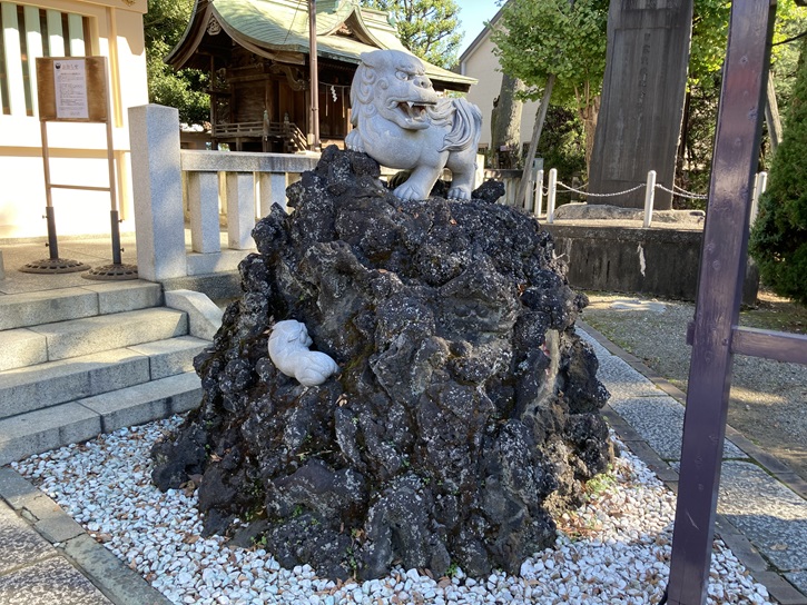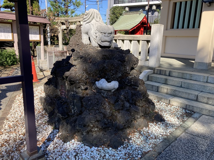 その「岩淵町 町名存続之碑」は、本殿階段下の角地に建っています。