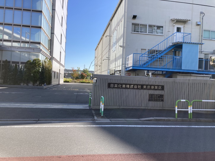隅田川沿いに日本化薬株式会社の研究所があります。会社名の「化薬」は元々は「火薬」で、現在は総合化学メーカーですが、大正五年(1916年)に日本火薬製造株式会社として発足し、日本で最初にダイナマイトを製造しました。現在は染料・農薬など薬品を手掛け、紫外線硬化樹脂であるフォトレジストを代表とするファインケミカル品や医薬品も製造しています。余談ですが、この研究所と隅田川を挟んで対岸の足立区新田に所在する工場との間で渡船を運航していて、隅田川の渡しのうち現存する唯一のものであるものの、従業員専用のために一般客の利用はできないとのことです。社員の船頭さんが漕いでいるのかな?