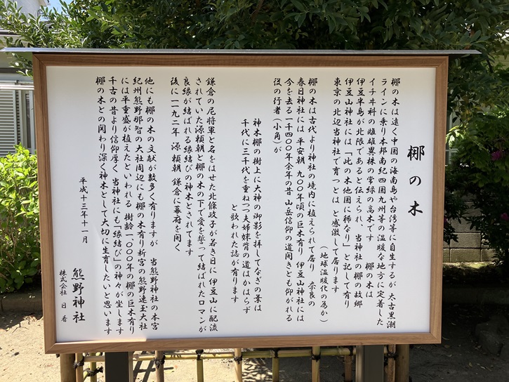 鎌倉の尼将軍と名をはせた北條政子が若き日に、伊豆山に配流されていた源頼朝と椰の木の下で愛を誓って結ばれたロマンが良縁が結ばれる縁結びの神木とされてます。後に1192年、源頼朝鎌倉に幕府を開く。