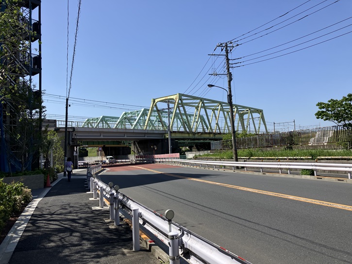京浜東北線・高崎線・宇都宮線(東北本線)の三本の鉄橋が連なるJR線のガード下を潜って、環八を渡り、JR線沿いに赤羽駅歩行に進みます。