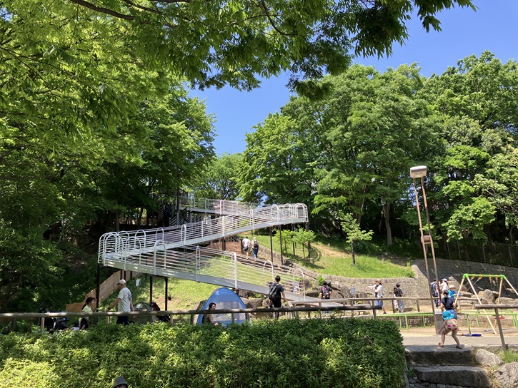 園内には、長さ52mのすべり台や広い斜面を利用して山間の渓流をイメージして作られた流れなど、楽しい設備がたくさんあります。