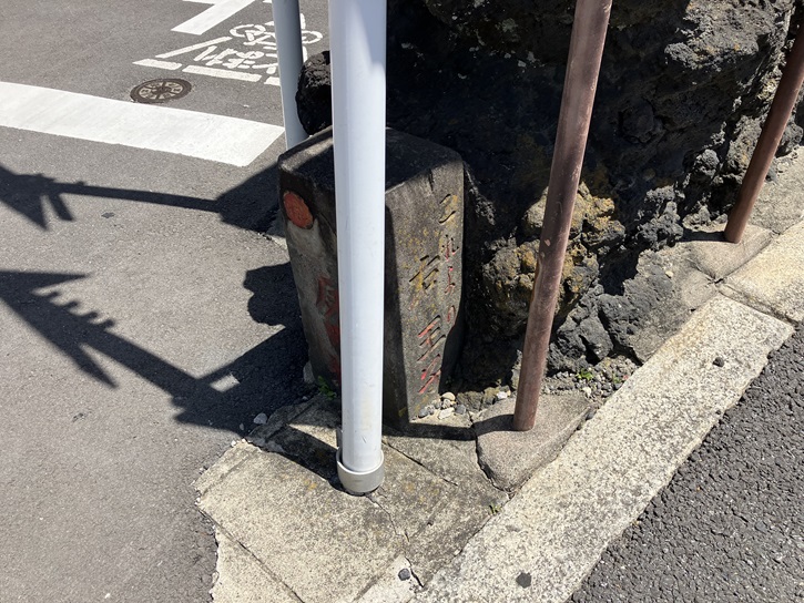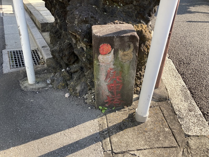 祠の手前には、道しるべでもある小型の文字庚申塔が建っています。字体からして近年に作られたみたいですね。