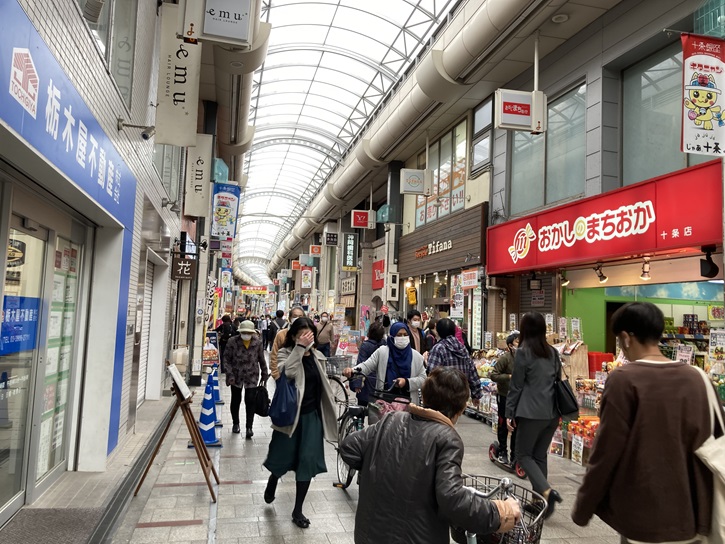 十条銀座商店街は、戸越銀座商店街と砂町銀座商店街と並んで東京の三大銀座商店街と呼ばれています。中央通り・東通り・西通りに200店を超える店舗があり、全長は約520メートルあります。昭和五十二年(1977年)から昭和五十四年(1979年)にかけてアーケードが整備され、天候を気にせず買い物ができて、1日の来訪客は約15、000人と都内有数の規模を誇っています。商店街の歴史は古く、1910年の赤羽線(現在はJR埼京線)十条駅開業後から周辺の住宅化により商店街として形成されたといわれています。生鮮食品店や衣料品店を中心に、飲食店・美容室・理髪店・ドラッグストア・日用雑貨店など、生活の利便性を高めるお店が一通り揃っています。特に生鮮食品店と惣菜店はメディアでも何度も取り上げられ、「十条価格」と呼ばれるほど割安で有名です。