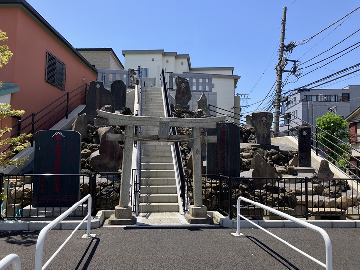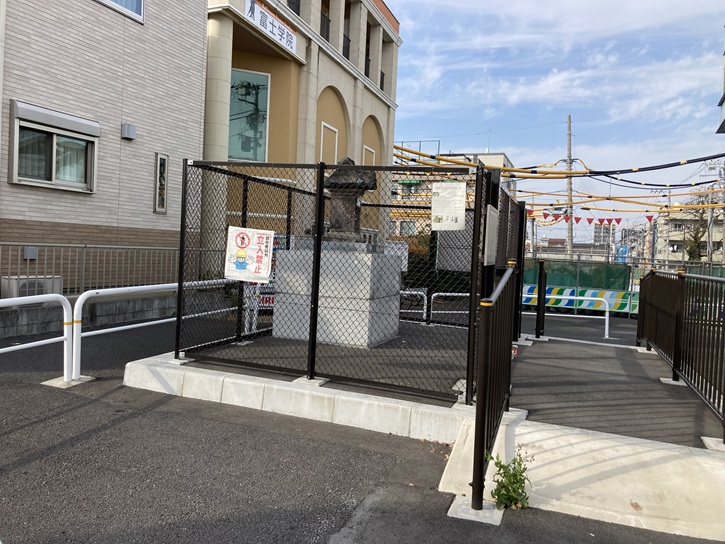 このコースを最初に歩いたのは2021年で、その当時は道路の拡幅工事のために、かっての十条冨士塚は取り壊され、この石祠だけが道路上の仮囲いの中に置かれていました。