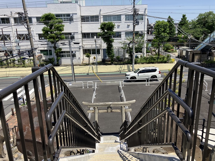 ということで、そこに山があるからには登頂しなくてはなりません。ですが、他の冨士塚と違って十条冨士塚は真新しい階段が整備され、登山の雰囲気はありません。あっという間に登り切りました。