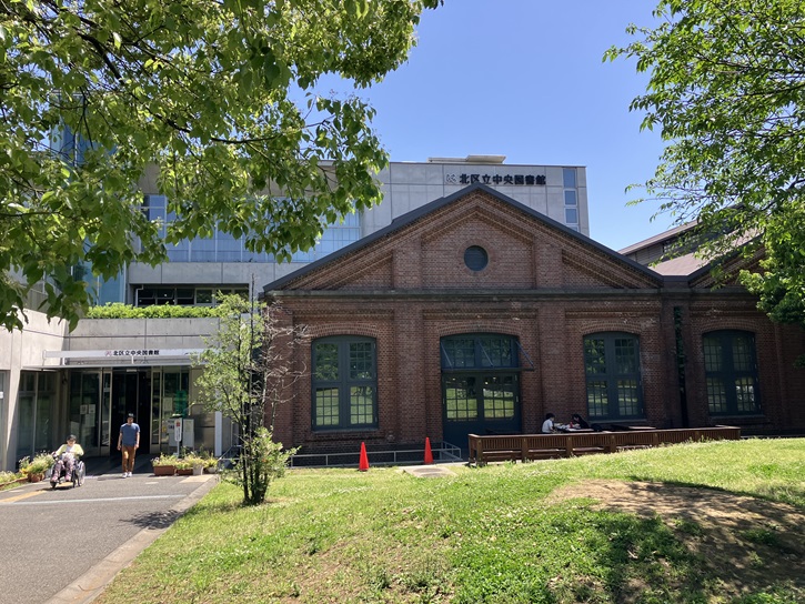 十条駐屯地に隣接した中央公園内に、ポイント4の「中央図書館(赤レンガ図書館)」があります。中央図書館は2008年3月までは王子にありましたが、1919年に建てられた旧陸上自衛隊十条駐屯地275号棟赤レンガ倉庫を改装・増築し、2008年6月28日に移転・リニューアルオープンしました。約44万冊の蔵書を揃え、誰でも利用できるようになっています。本を読み疲れたら、敷地内の緑あふれる芝生の上で歴史ある赤煉瓦の建物を眺めながら休憩できます。