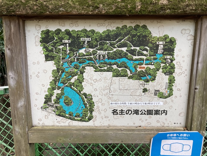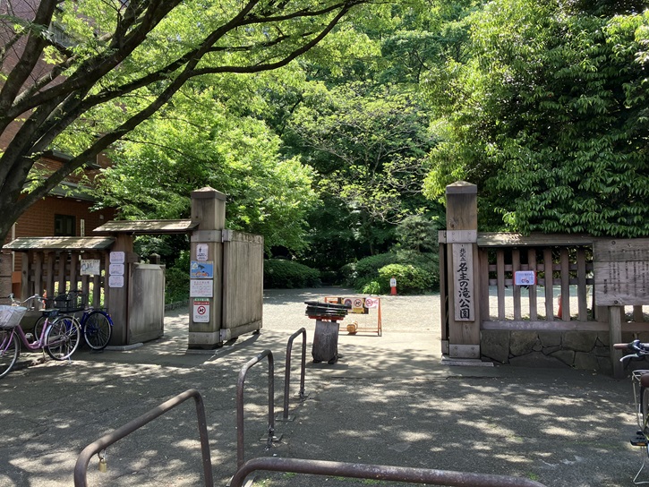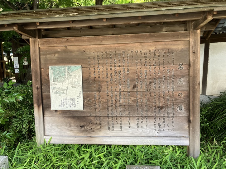 名主の滝公園は、江戸時代に王子村の名主であった畑野孫八が屋敷内に滝を開き、茶を栽培して避暑のために一般に開放したのが始まりで、公園名の「名主」はそこに由来します。戦災で一時荒れ果てていましたが、東京都が土地の買収と橋や東屋などの修理を進め、昭和三十五年(1980年)に都の有料公園として開園しました。その後、昭和五十年(1975年)に北区に移管されました。