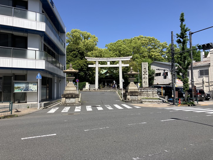 写真左手の朱色の鳥居と、その奥の屋根が本殿です。正面からの写真は撮り忘れました。