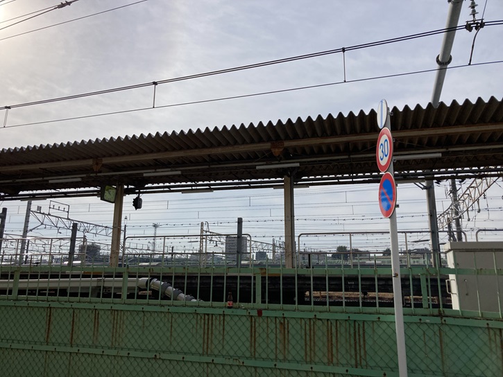 地下道から出て操車場を眺めますと、見通しは悪いですが沢山の車両が並んでいます。