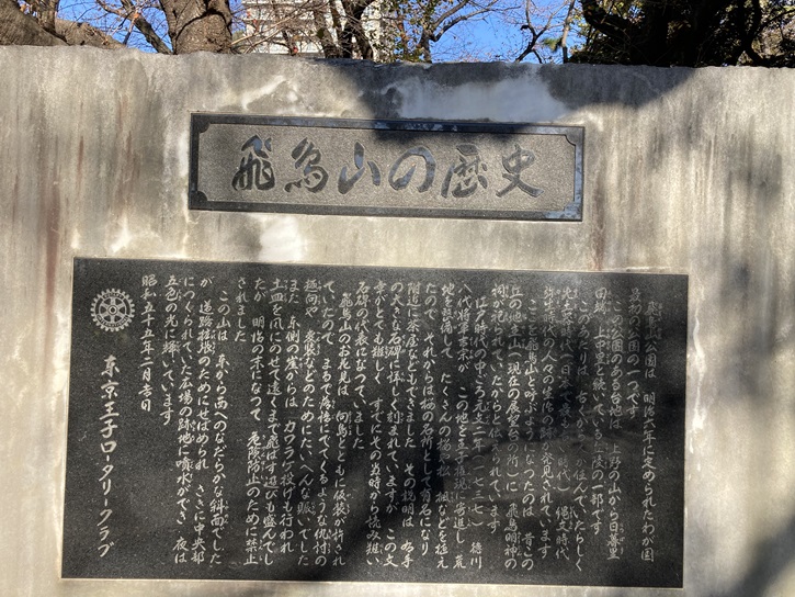飛鳥山の歴史を記した石碑も建っています。