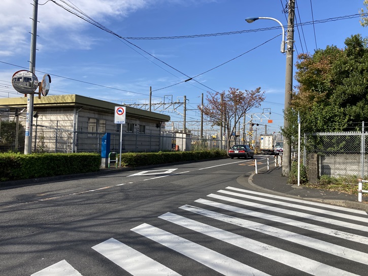 尾久操車場から上野方面に向かって線路が道路と交差しています。列車密度・速度共に高い東北本線(宇都宮線・高崎線列車)の運行に支障を来たさずに数多くの回送列車を安全にさばくため、上野駅から尾久操車場への分岐点を超えて尾久駅手前までの東北本線は複々線となっていて、この間の客車列車の回送には、「推進回送」と呼ばれる特徴的な方法が採用されています。推進回送が本線上で行われているのは全国でもここだけです。推進回送とは、機関車牽引の列車を通常とは逆向きの、客車を先頭・機関車を最後尾とした推進運転で回送する方法です。上野発着の寝台特急に代表される客車列車は上野駅で転向(折り返し)が必要ですが、ホームの構造上それができません。なので、尾久操車場からは機関車を最後尾に連結し、逆向きに上野駅に向かうのです。勿論、運転台のない先頭の客車には可搬式のブレーキ弁・警笛・前照灯・無線が用意され、非常時のブレーキ操作を行う推進運転士が乗り込み、後部の運転士と連絡を取りながら運転されます。撮り鉄にとってはたまらない光景ですね。