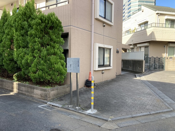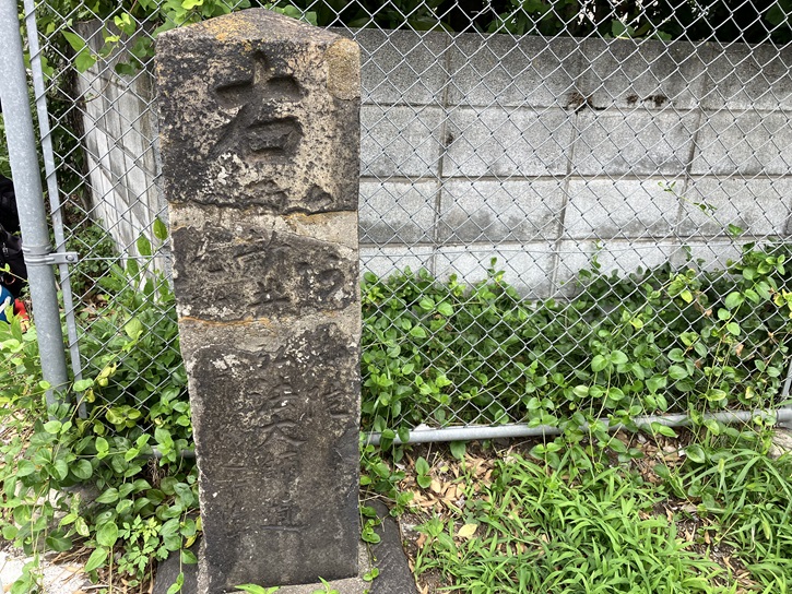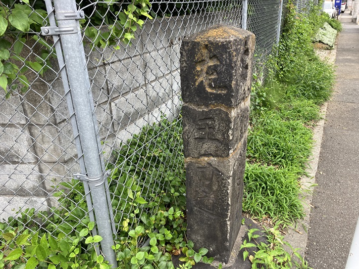 田端操車場に面したT字路に古びた道標が建っています。