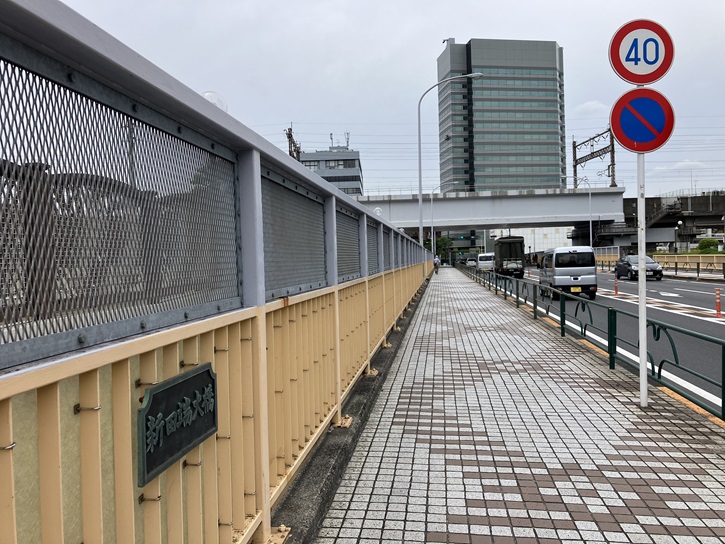 上空を東北・上越新幹線が通り、JR京浜東北線・山手線を跨ぐ跨線橋には、「田端大橋」という嬌名が付いています。正確に言いますと、歩行者専用の橋が田端大橋で、車道の橋には「新田端大橋」という嬌名が付いています。初代の大橋(名称は 江戸坂跨線橋)の竣工年は不明ですが、二代目の大橋は、昭和十年(1935年)に動坂からの道を通して掛けられました。そして、今の三代目「新田端大橋」は、その半世紀後の昭和六十二年(1987年)に旧大橋に沿ってすぐ北側に掛けられました。車線も増え、線路に沿った取り付け斜路を両方向に設けることで、車の流れもスムーズになりました。