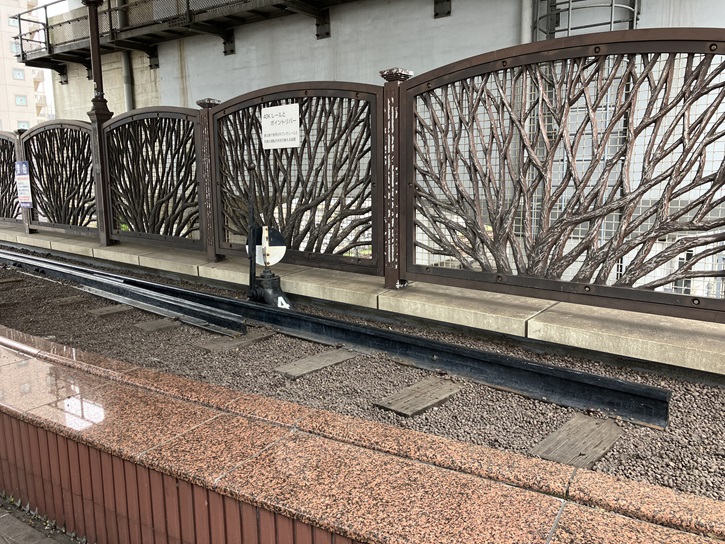 田端ふれあい橋には、鉄道に関するモニュメントが展示されています。