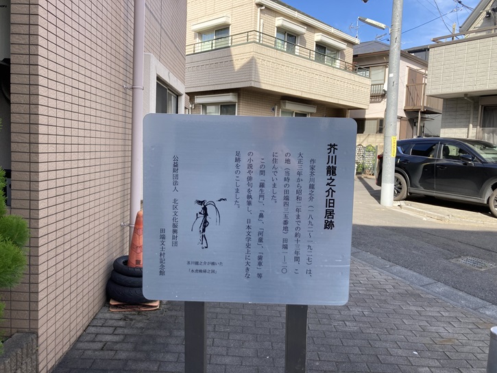 作家芥川龍之介(1892年〜1927年)は、大正三年から昭和二年までの約十三年間、この地(当時の田端四三五番地)田端1−20に住んでいました。この間「羅生門」、「鼻」、「河童」、「歯車」等の小説や俳句を執筆し、日本文学史上に大きな足跡をのこしました。