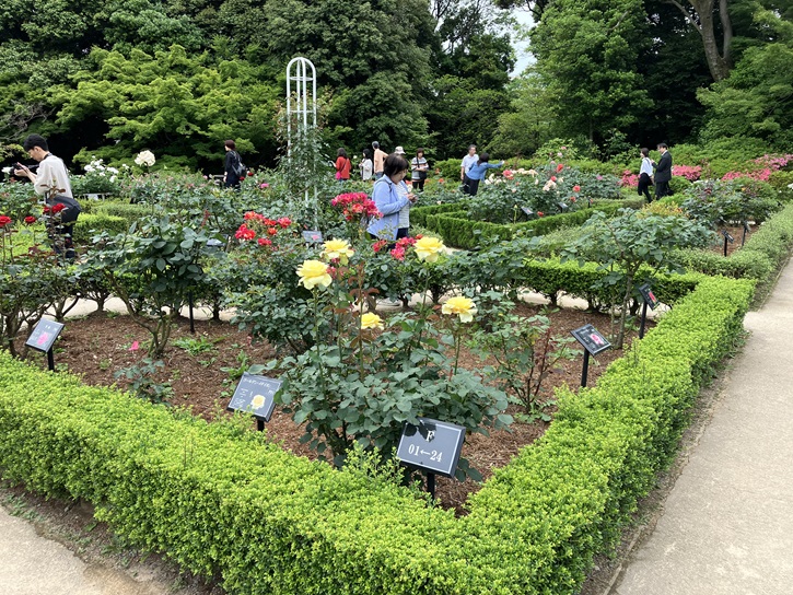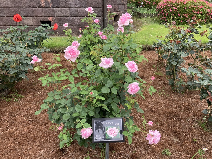 それぞれのバラの花には名前が付けられています。ラ・フランスはモダンローズの元祖バラで、園芸史上最も重要な品種です。バラが世界中の人に愛されるようになったのはこのハイブリッドティーローズがあったからこそといっても過言ではありません。純白の花びらをしたダイアナ王妃のバラもあります。東洋のダイアナの名前は見当たりませんが。