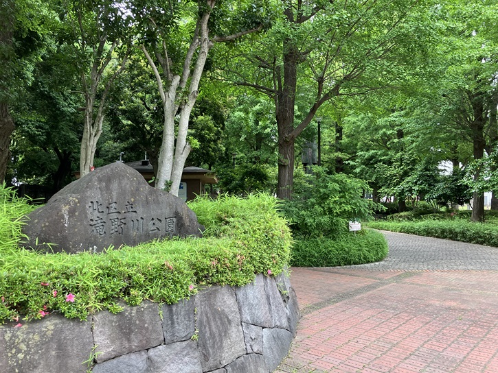 滝野川公園は、水と緑が多く、子どもから高齢者まで多くの人々に利用されています。この公園の特徴は「防災公園」としての性格も有していることです。北区防災センターが隣接し、災害備蓄倉庫・応急給水槽(1500トン)・深井戸・散水塔(放水銃)などの防災設備が整っています。周辺には消防署・警察署・病院・体育館があり、滝野川公園を含めたこの一帯が総合的な防災拠点になっています。植栽の中に「東京高等蚕糸学校発祥之地」の石碑が建っています。現在の東京農工大学の前身とのことです。