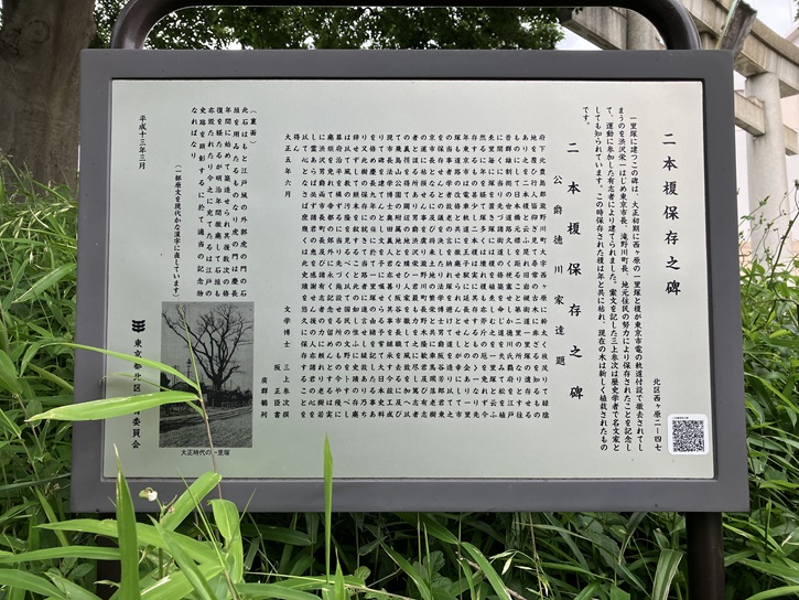 こちらの案内板は、「二本榎保存之碑」を今様に補足しています。