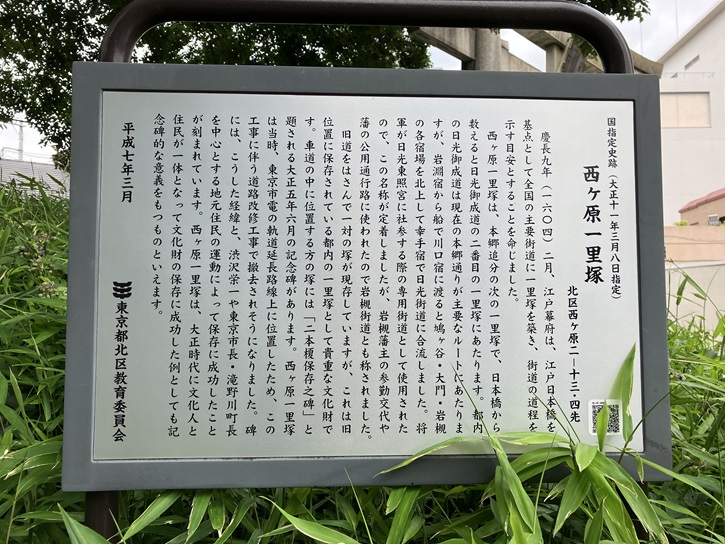 - 一里塚とは、日本橋から街道を一里ごとに道の両側に築かれた塚のことで、その上に榎が植えられました。この一里塚は、国の史跡に指定されています。