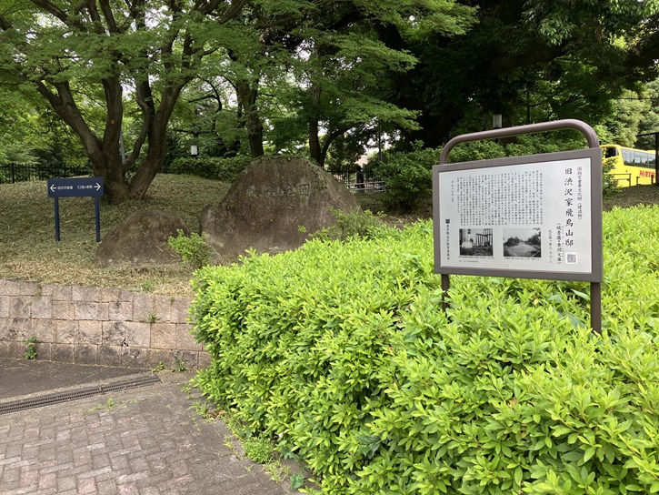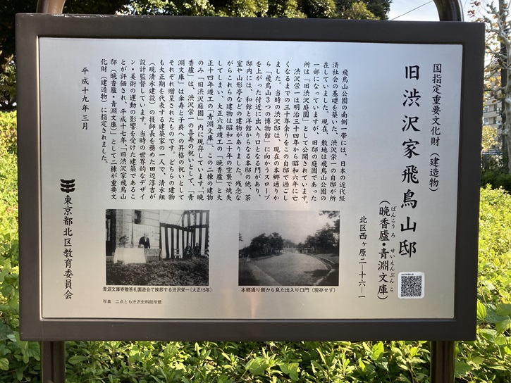 ポイント6の「飛鳥山公園」の東側の入り口横に渋沢栄一が住んだ邸宅の案内板が立っています。
