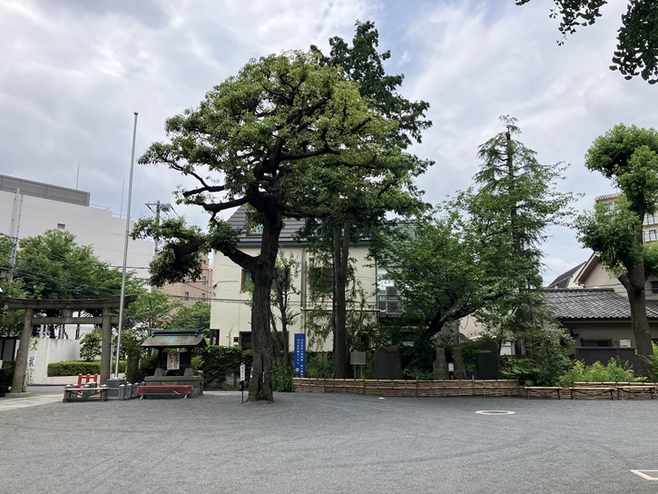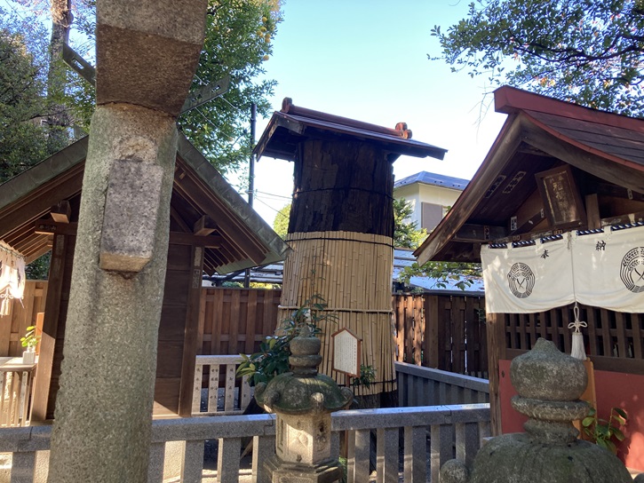 当時の一本杉の御神木は古木として現在も社奥に切株が残っています。