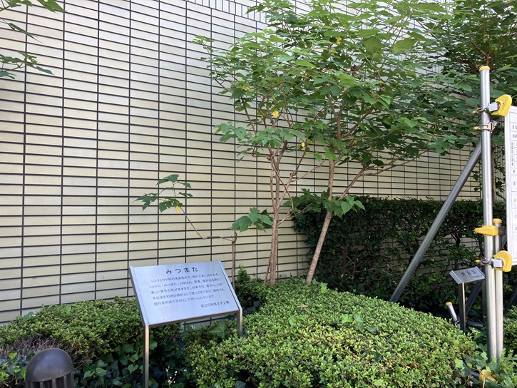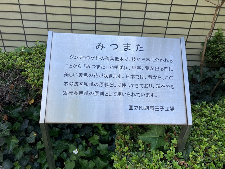 建物前の植栽には、紙の原料となる「みつまた」が植えられています。