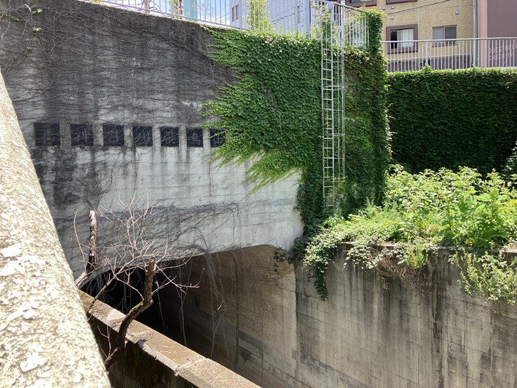 でも、水は殆どありません。実は、石神井川の本流はこの先で分流し、飛鳥山公園の下を流れて王子駅の先で再合流しているのです。ここはかっての石神井川の流路で、今は親水公園として残っているのです。石神井川は北区付近ではかって「音無川」と呼ばれ親しまれ、古くからの春の桜・夏の青楓と滝あび・秋の紅葉など四季の行楽の名所・景勝の地でした。しかし、戦後の経済の復興・発展とともに石神井川も生活排水などで汚れた川となりました。また、昭和三十三年9月の狩野川台風で一帯の渓谷が破壊されたことを受け、飛鳥山公園の下に2本の通水トンネルを掘って川の流れを変える工事が行なわれました。昭和三十年代から始まった改修工事によって緑の岸辺は厚いコンクリートの下へと消え、典型的な都市河川となりました。