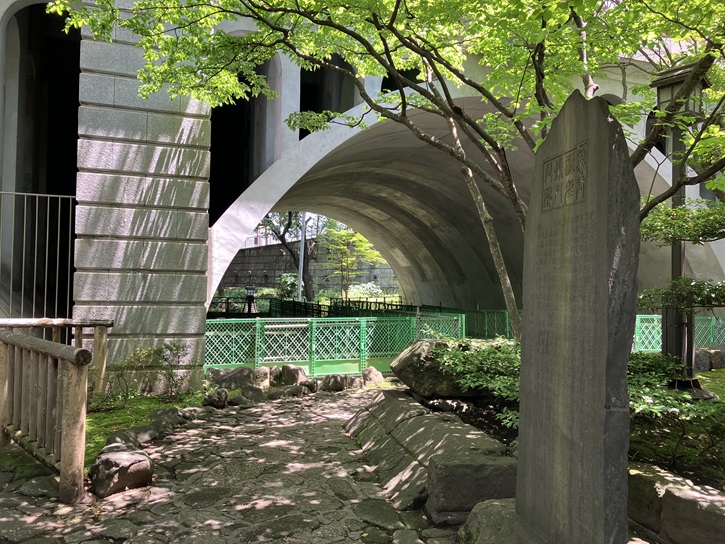 お札と切手の博物館から王子駅北口の東西自由通路を通って、「音無親水公園(熊谷源左衛門君碑)」に向かいます。