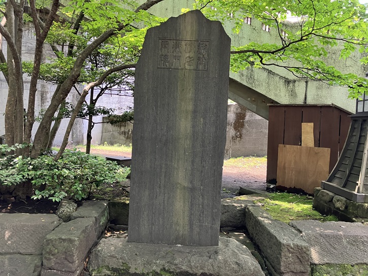 此石はもと江戸城の外郭虎の門の石垣を用いたるものなり。虎の門は慶長年間に始めて築造せられ、其後数次の修復を経たるが明治年間撤廃して石垣も亦毀たれたり。今之に充てたるは江戸の史跡を顕彰するに於て適当の記念物なればなり。