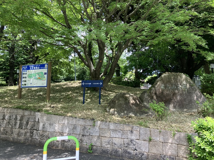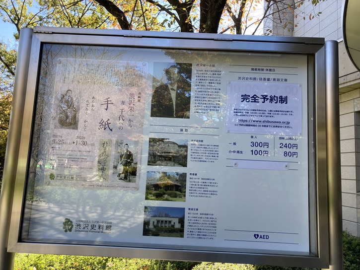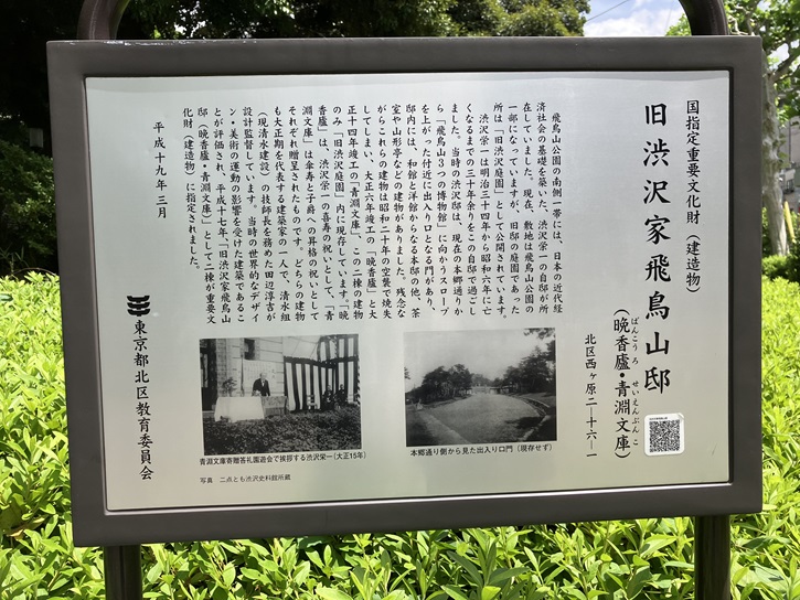 「飛鳥山公園」の東側の入り口横に渋沢栄一が住んだ邸宅の案内板が立っています。