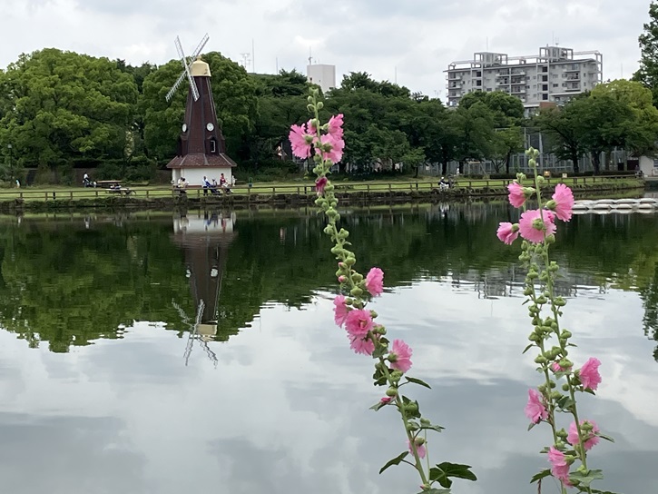 公園面積の約40%を占める浮間ヶ池では、コイやヘラブナなどの釣りが無料で開放され、一年中釣人が絶えません。池の畔には公園のシンボルとして設置された風車が一基あります。風車は公園の見どころのひとつで、季節によってさまざまな景色を見せてくれるほか、期間限定でライトアップが行われることもあります。