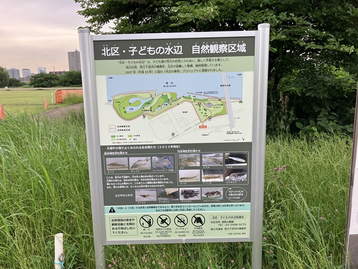“北区・子どもの水辺”は、子ども達が荒川の自然にふれあい、楽しく学習する場として、地元区民、荒川下流河川事務所、北区が協働して整備、維持管理しています。平成十九年(2007年)に国の「水辺の楽校」プロジェクトに登録されました。