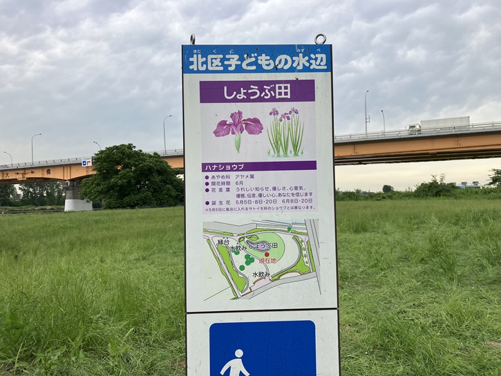 国道122号(岩槻街道・北本通り)が通る新荒川大橋の手前に、案内板にも掲載されていた「北区・子どもの水辺」があります。