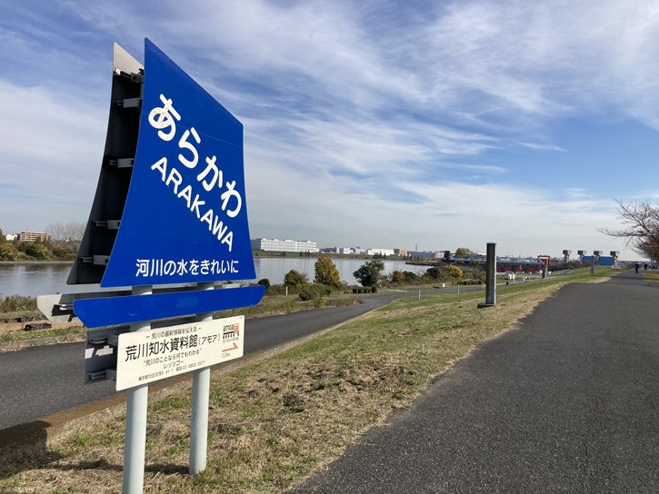 荒川土手の下に案内板が立っています。