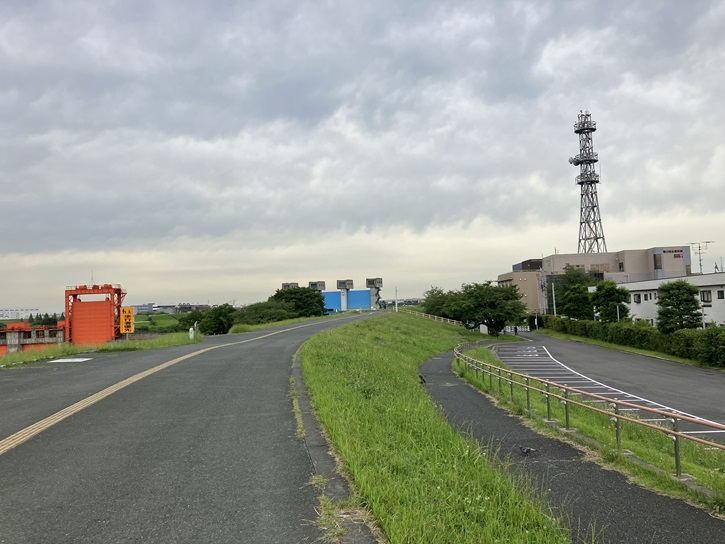 荒川土手から、旧岩淵水門(赤水門)と土手を挟んだ反対側にある「荒川知水資料館(amoa)」に向かいます。