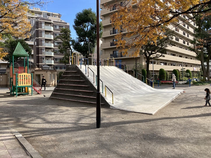 赤羽公園は、キリンの滑り台がある小さな公園部分と、噴水と時計台のある広場、滑り台や砂場のある公園部分の3つの部分に分かれています。