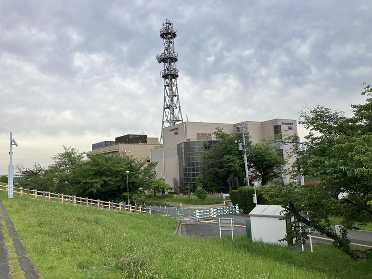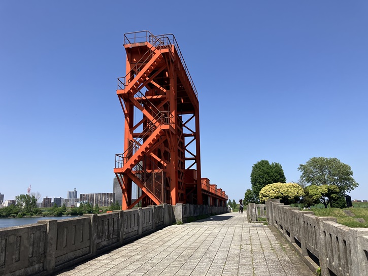 陸続きになっている荒川赤水門緑地に渡ります。奇妙な塔が荒川を見下ろすように建っています。