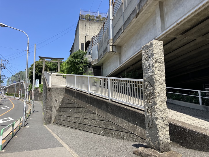 石坂は長さが約25mほどの急な階段です。別名を「赤羽八幡神社石坂」といいます。坂名の由来は不明ですが、単純に石造りの階段ということに因んでいるものと思われます。階段左手の壁には、人名が書かれた多くのプレートが埋め込まれています。昭和四十六年(1971年)に東北・上越新幹線の建設が決まると赤羽八幡神社の神域を通ることは避けられず、神社氏子ともに反対するものの、最終的には国の決定を受け入れざるを得ませんでした。ただ、社務所の下は通ることになったものの、本殿の下を通ることは回避されました。神の祟りは怖いですからね。
