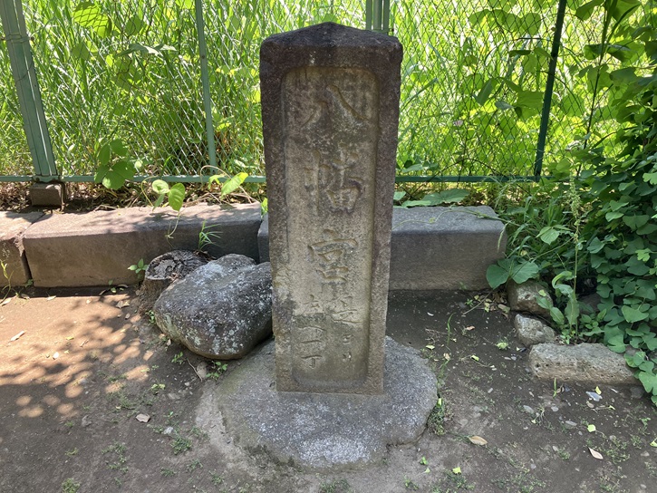 諏訪神社境内には、標石型の水準点が設置されています。明治九年以来、内務省は国土の測量のため、水準点の設置をおこなってきました。水準点とは、水準測量を行う際に基準とする点です。境内の水準点標石をよく見ると、それぞれの面に「内務省」「昭和五年」「荒川」「不B.M.1」と刻まれているのが判ります。「不」の字に見えるマークは「几(き)号」といって「不」の字の横棒が標高を表します。「B.M.」とは、水準点を表す英語「ベンチマーク」の頭文字で、そのあとの1は1号を表し、「荒川1号水準点」という意味合いになります。実はこの水準点は、それまでに内務省が設置した荒川筋の水準点を補完する目的で、昭和五年に新たに荒川筋に設置された十五ヶ所(内二ヶ所は入間川筋に設置)の水準点の一つです。記録によれば、諏訪神社境内の基準点を1号とし、荒川の上流方向に向かって水準点の設置が行われています。