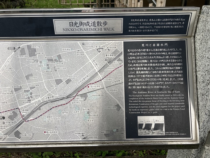 The flood-prone Arakawa River was finally tamed in 1924 with the completion of the Iwabuchi Sluice Gate and the Arakawa Canal. This ended the ever-present threat of flooding to the low-lying areas downstream. Construction of the gate and canal required considerable technological expertise, and the chief engineer for the project used his hands-on experience gained while on a visit to the Panama Canal