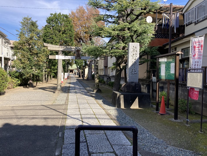 荒川知水資料館から住宅地の中の「熊野神社」に向かいます。